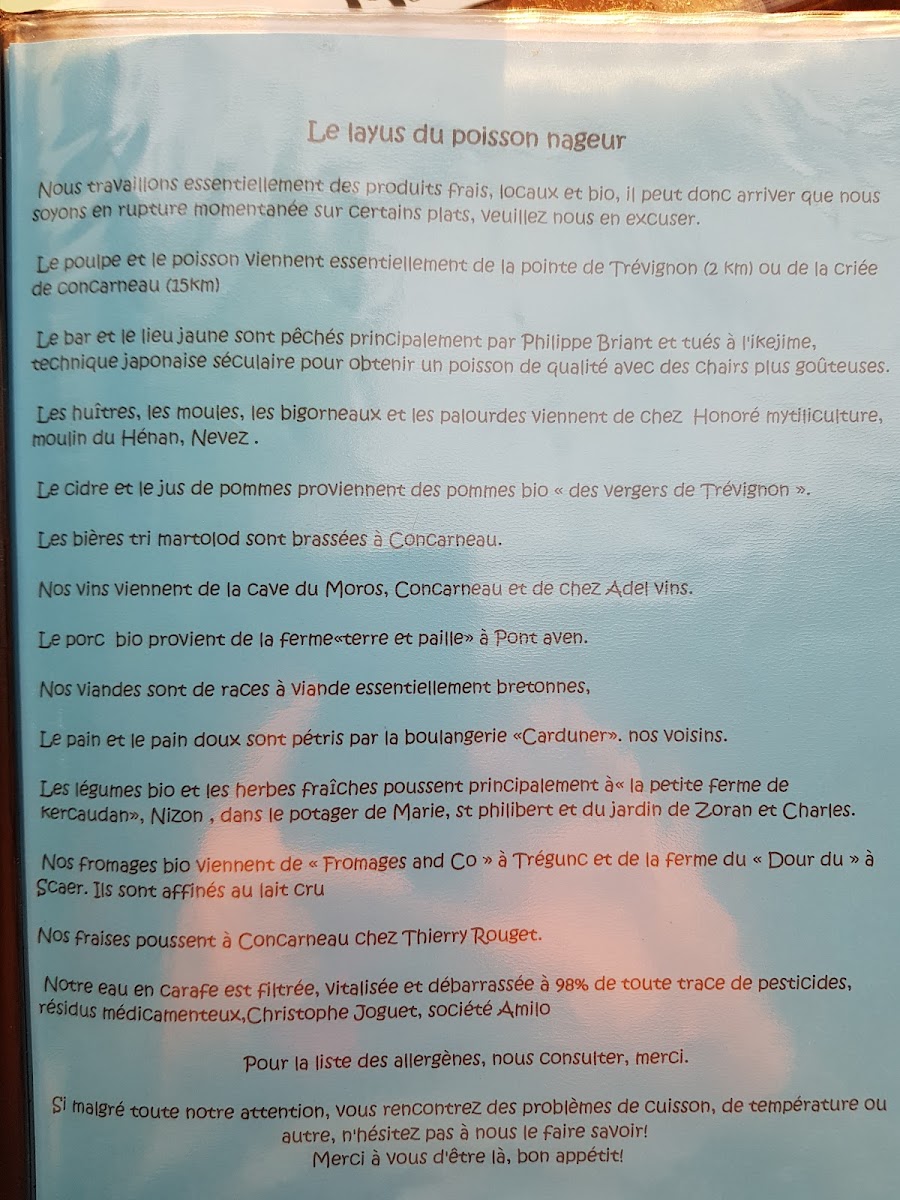 Welcome to Le Poisson nageur, a charming culinary gem located in Tregunc, France. Nestled at 6 Hent an Aod, this restaurant offers a delightful dining experience driven by a passion for fresh, local ingredients. Guests are greeted warmly, creating an inviting atmosphere reminiscent of a cozy home.